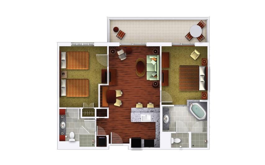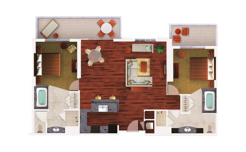 Luxurious 1-, 2- and 3-bedroom suites with private balconies, Each suite features fully equipped kitchen, washer and dryer, Internet access.